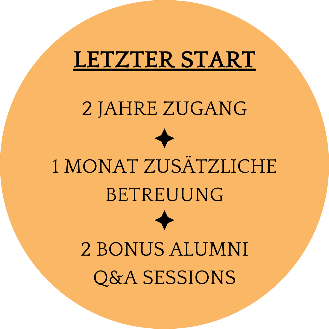 Betreut wirst du durch mein Team und mich. Zusätzlich hast du die Möglichkeit an 4 Academy Meetings teilzunehmen und dich direkt mit den anderen auszutauschen.